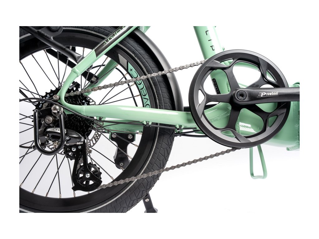 Skladaci elektrobicykel je oproti iným elektrobicyklom ľahší. Tento model, aj s elektropohonom, váži iba 22 kg (+ 3,3 kg batérie). Rozmery zloženého elektrobicykla sú 84 cm × 70 cm × 54 cm (dĺžka × výška × šírka). Vďaka tomu ho ľahko znesiete po schodoch, vnesiete do vlaku alebo naložíte do auta.
