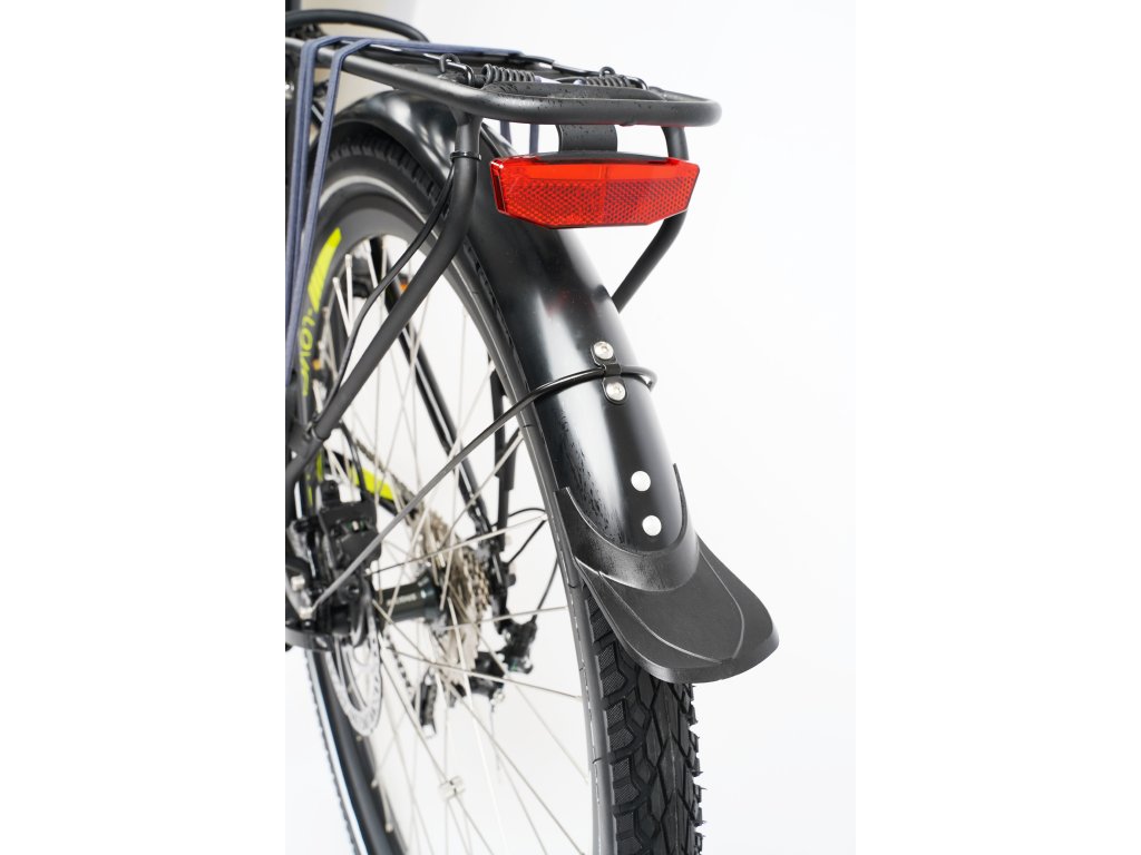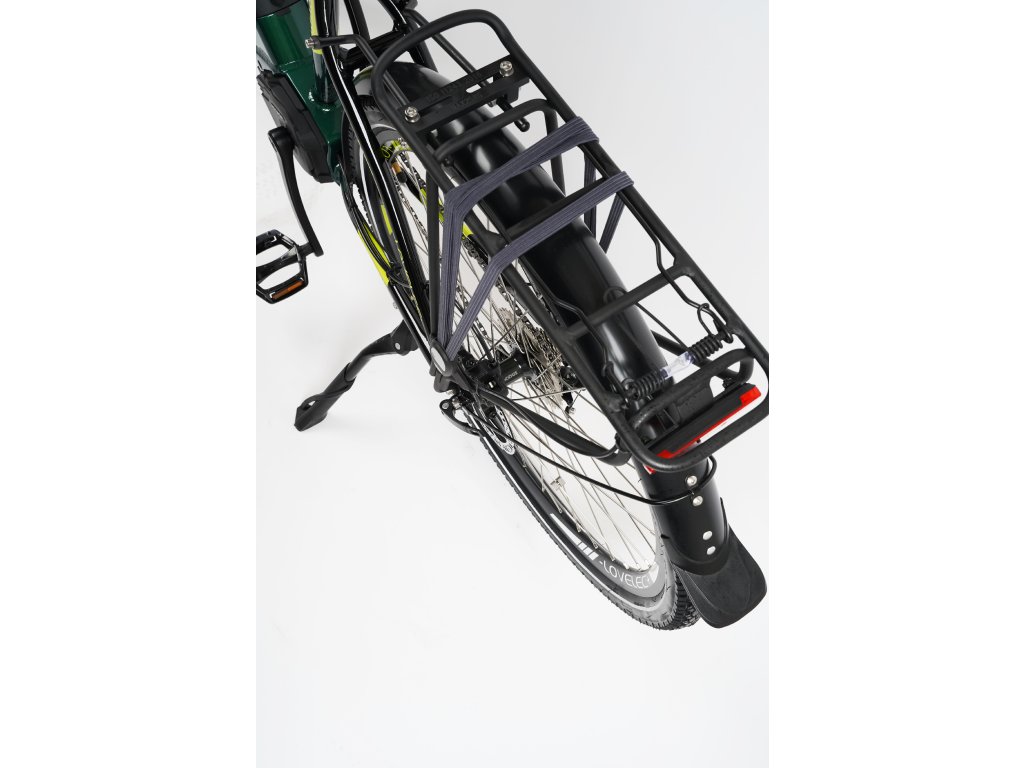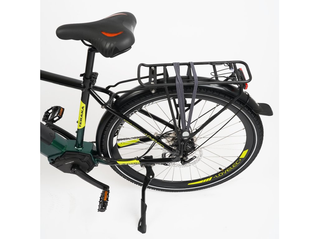 Součástí elektrokola je také praktický hliníkový nosič pro přepravu turistického vybavení nebo jiného nákladu s maximální hmotnosti 25 kg.