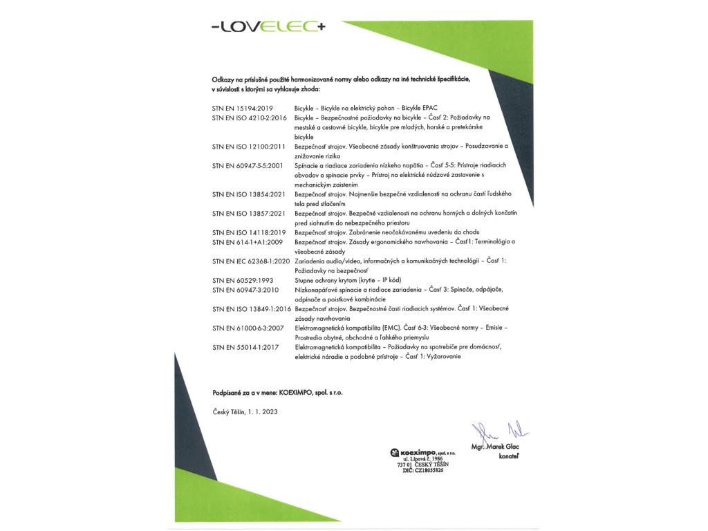 - Dvouletá záruka na všechny části elektrokola včetně baterie.